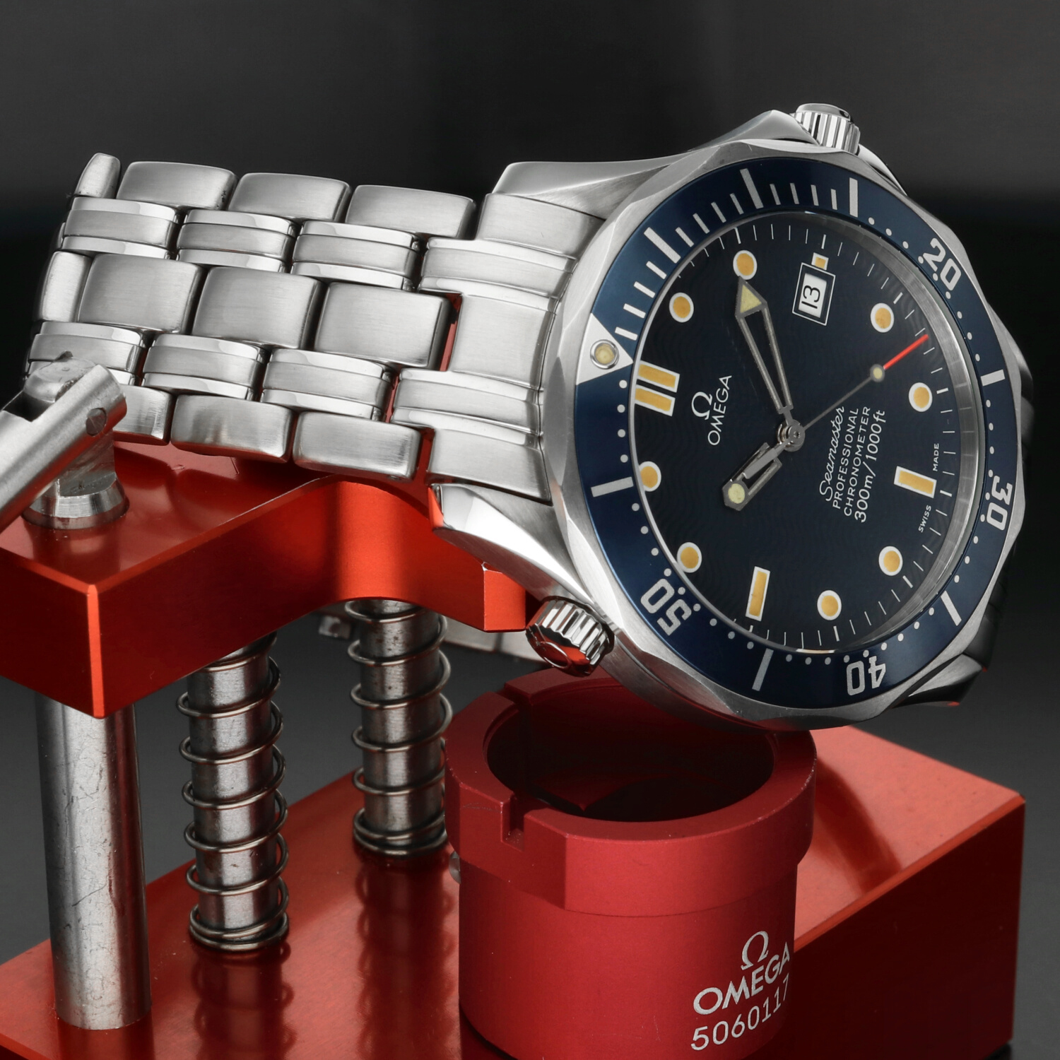 What truly made this model legendary, however, is its connection with cinema. This very Seamaster was worn by James Bond on the wrist of Pierce Brosnan starting from the 1995 film GoldenEye, beginning a partnership between Omega and the world’s most famous secret agent that continues to this day. From that moment on, the “Bond Seamaster” became far more than just a dive watch: it became a symbol of Omega’s modern renaissance and one of the most recognizable sports watches of the last thirty years.