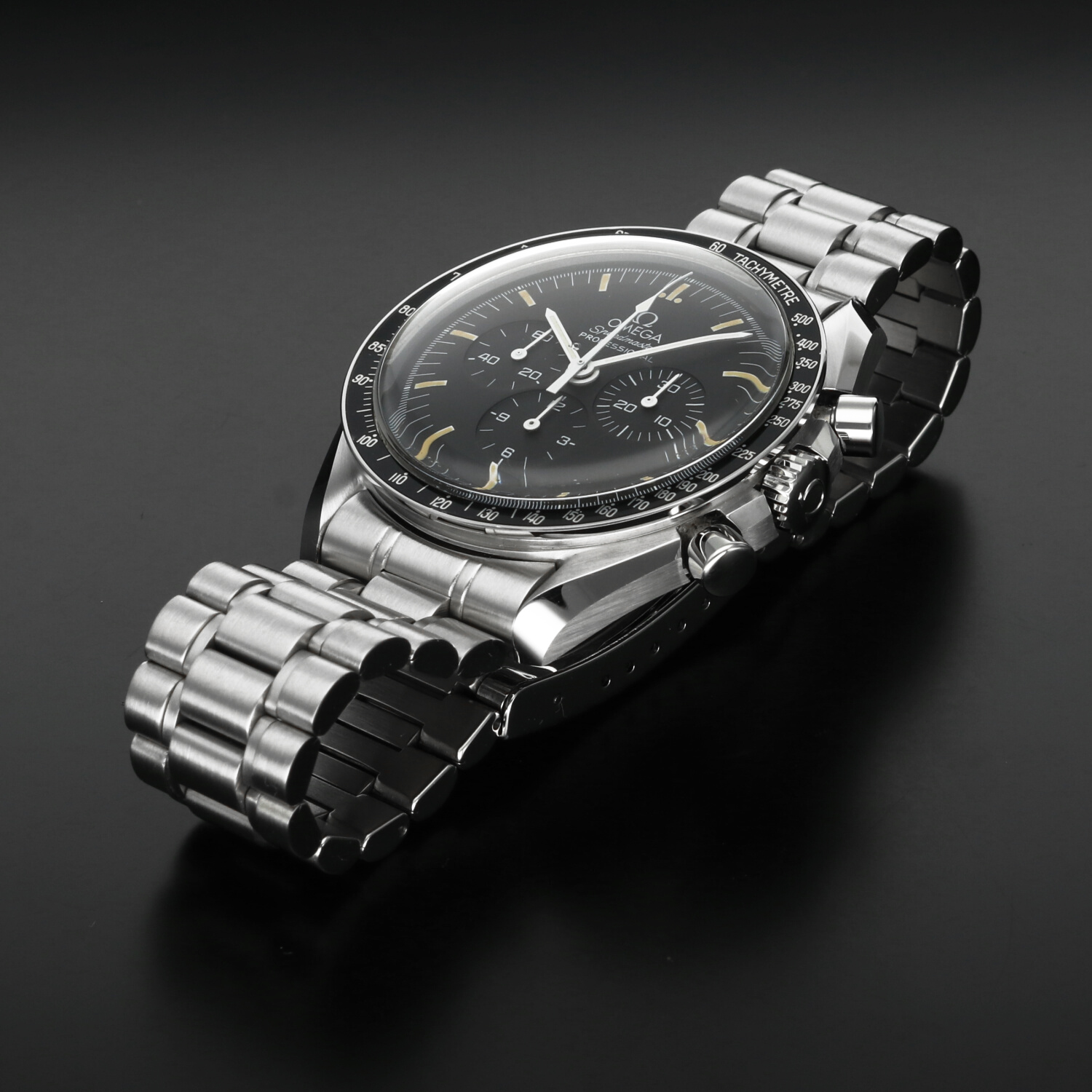 Produced between the late 1980s and mid-1990s, this reference retains all the classic features of the Speedmaster lineage: the 42 mm asymmetrical case with lyra lugs, the double-engraved NASA caseback, the black tachymeter bezel, and the hesalite crystal that gives off that warm reflection unique to tritium-era pieces. The overall balance is perfect, with a vintage charm that deepens over time thanks to the golden patina of the indexes — one of the most beloved details among collectors.