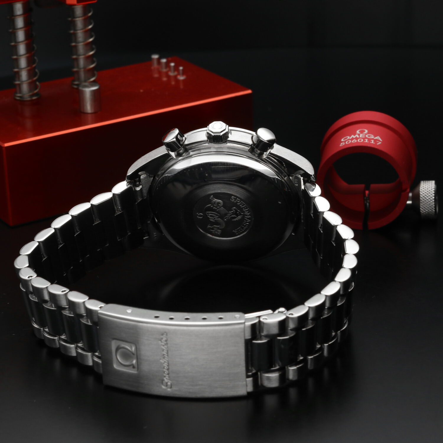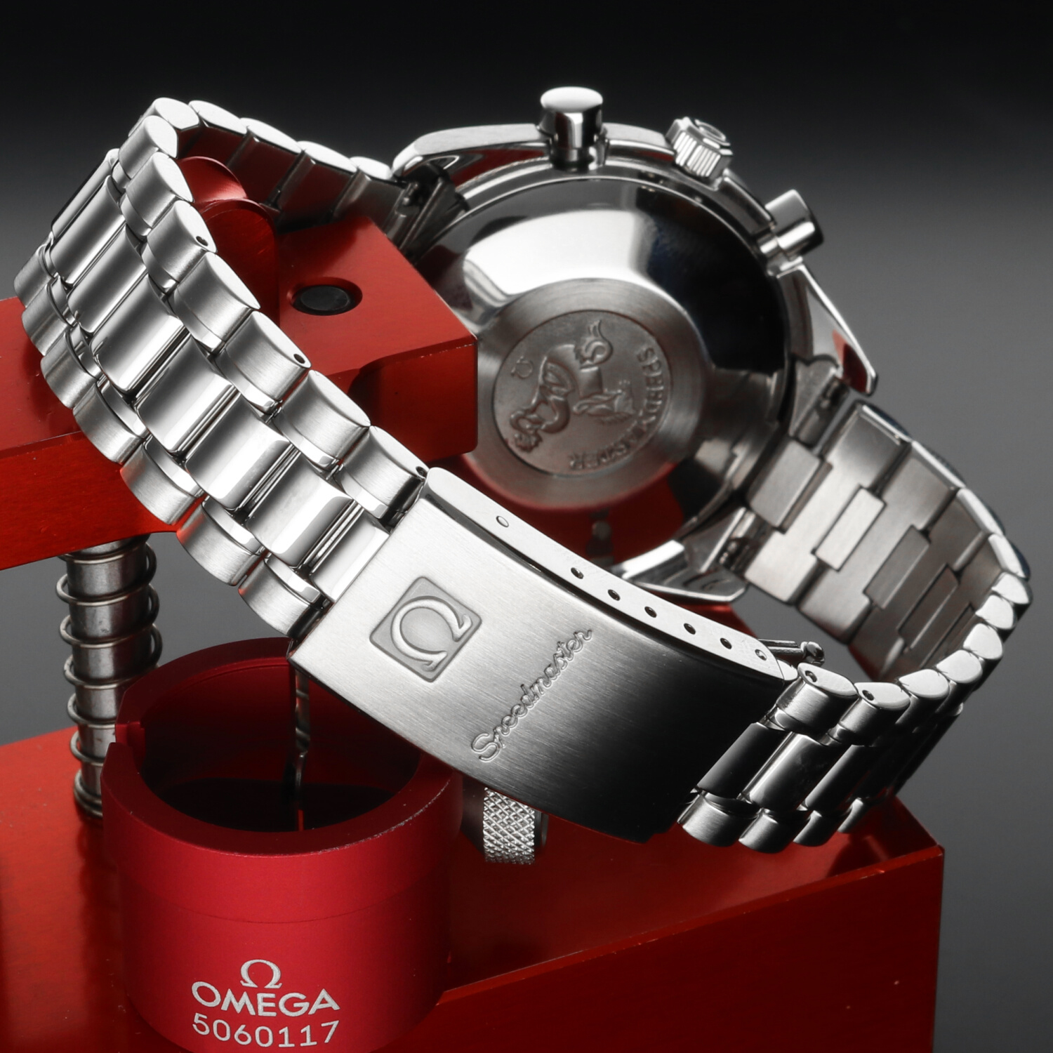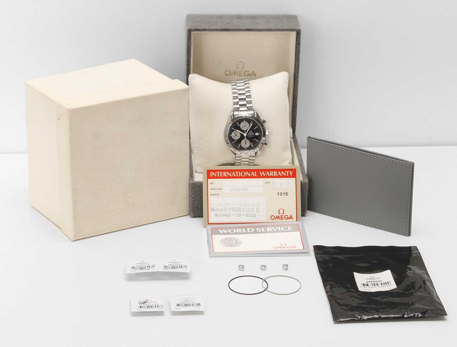 This Omega Speedmaster Reduced Date ref. 3511.50.00 has been recently serviced by an authorized Omega service center. The service included a professional polishing and the replacement of the complete waterproofing kit (seals and pushers), ensuring that the watch is fully functional and ready to wear without the need for further intervention.