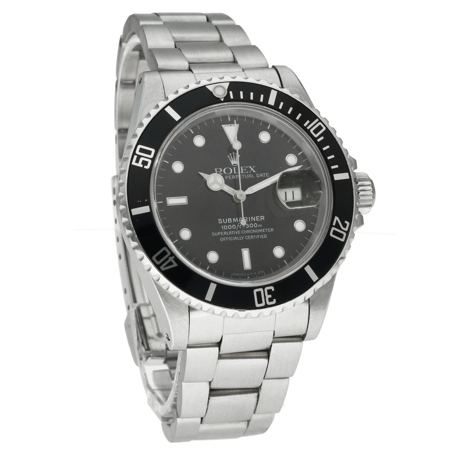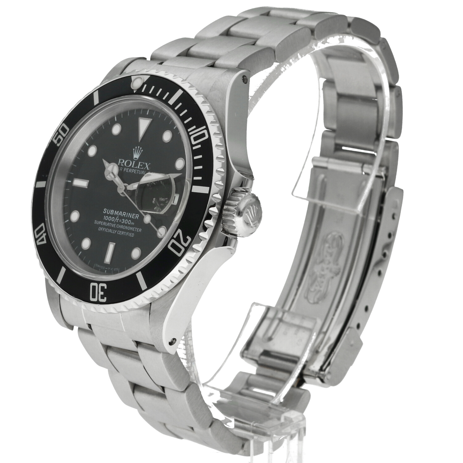This configuration dates back to the early 1990s, a period when the Submariner still featured a tritium dial, recognisable by the Swiss-T<25 designation. On this example, the luminous material has remained remarkably well preserved, with clean, even tones and no significant yellowing—an authentic presentation fully consistent with its production period.