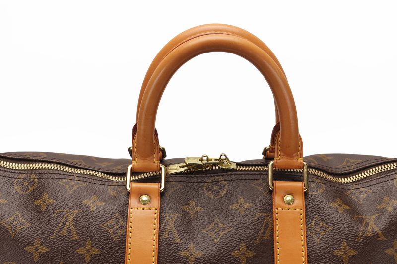 The Monogram canvas, renowned for its durability and timeless appeal, is in excellent condition, with no rips or cracks. The calf leather accents, which enhance the bag, have developed a natural honeyed patina, a characteristic feature of Louis Vuitton Pre-Loved pieces. The small marks and slight stains, the result of use, do not detract from the bag’s beauty; instead, they give it the unique character that only a vintage piece can possess. Each mark tells a part of its journey through time, making this Keepall 45 a unique and irreplaceable item.