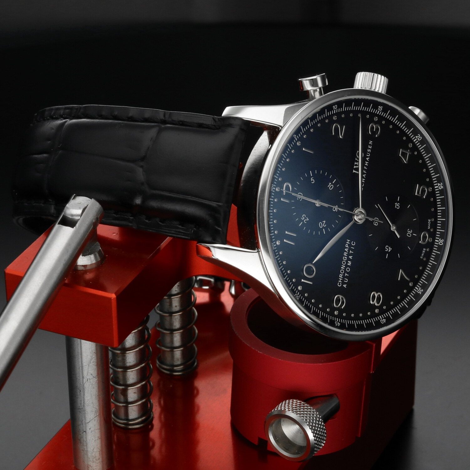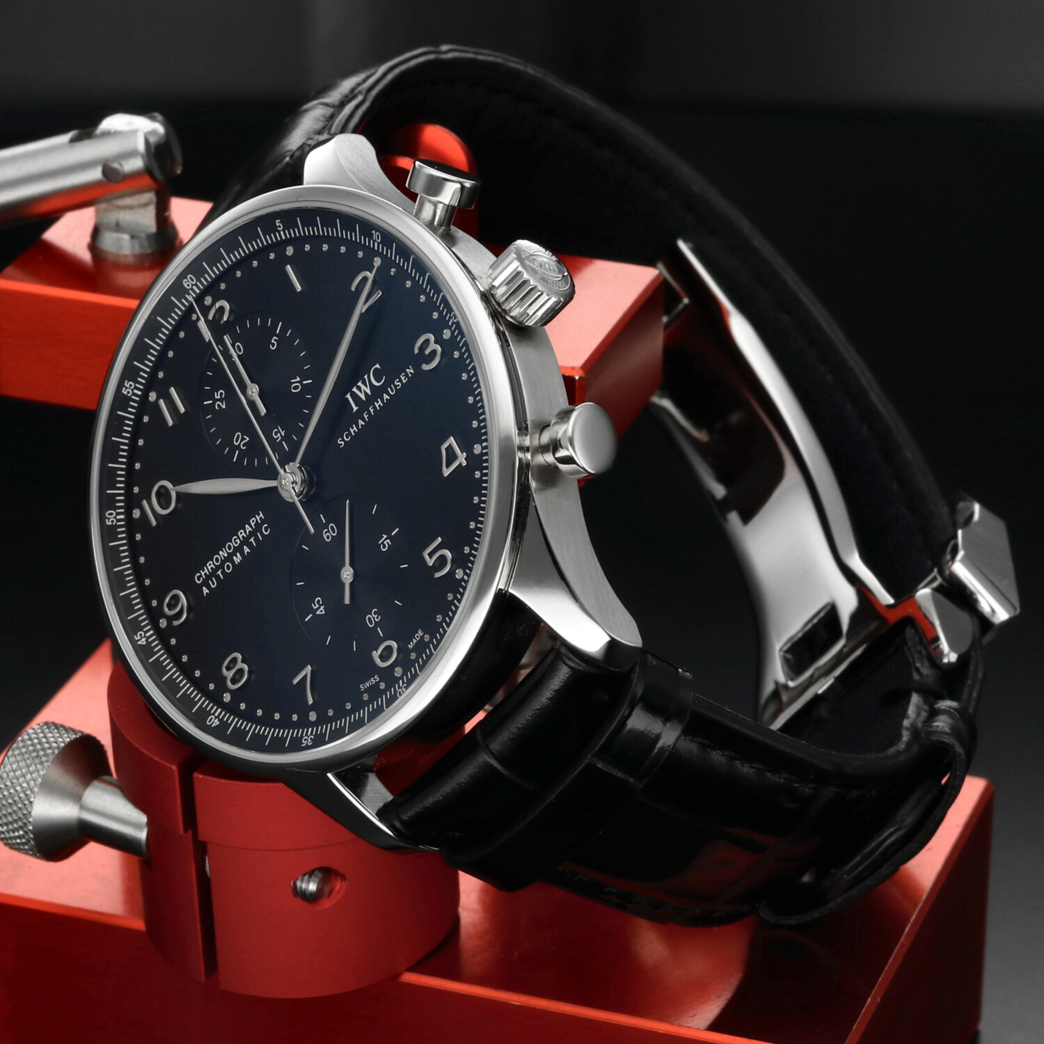 Questa configurazione nero su nero non è la più tradizionale della famiglia Portugieser — ed è proprio questo il suo punto di forza: meno prevedibile, più distintiva. Un Portugieser per chi ama l’eleganza, ma con carattere.