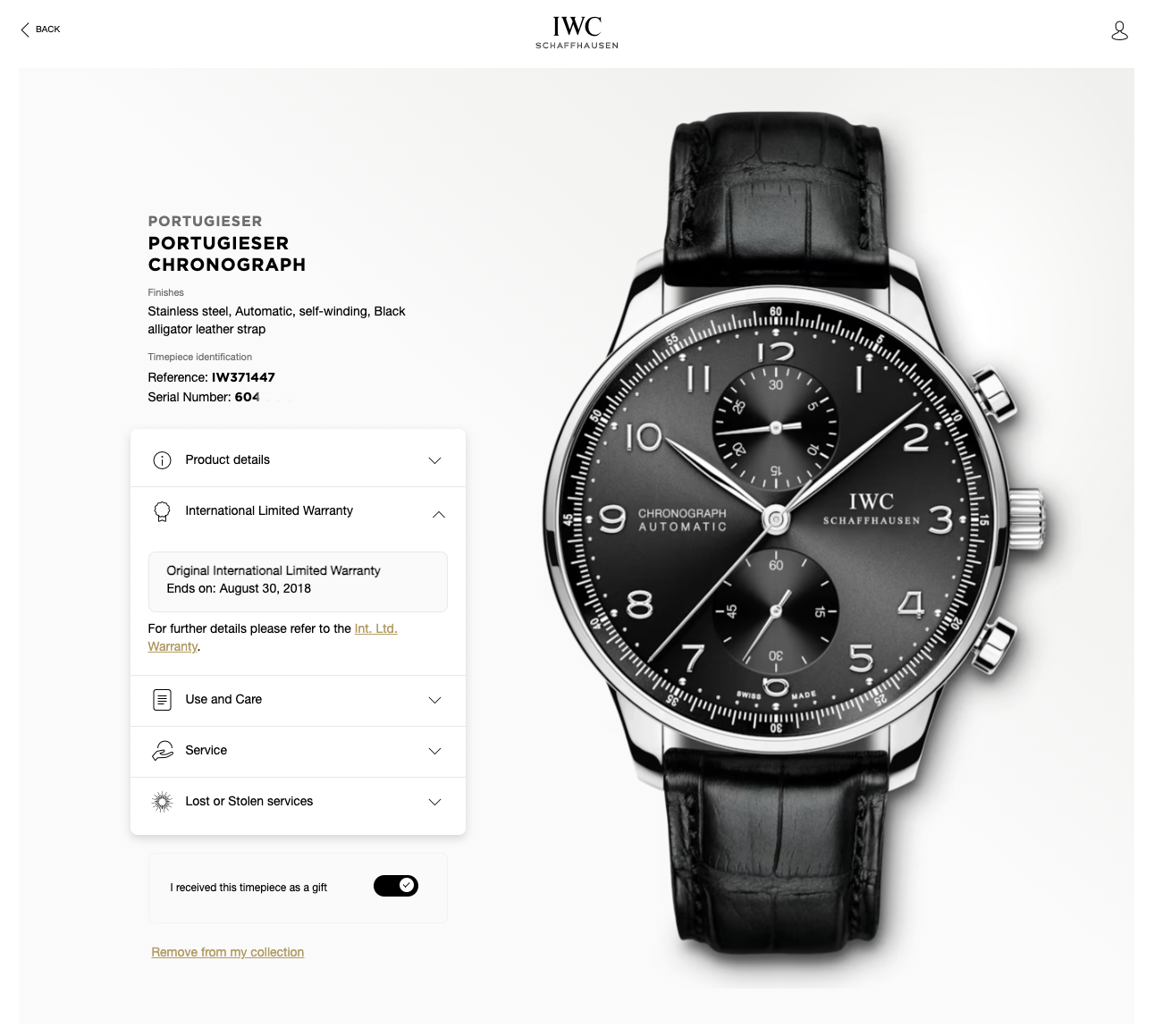 Non è presente la garanzia ufficiale IWC.