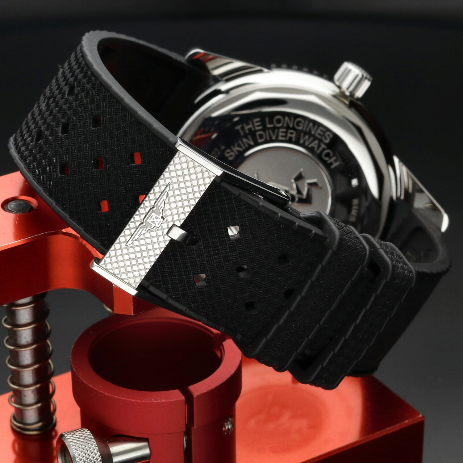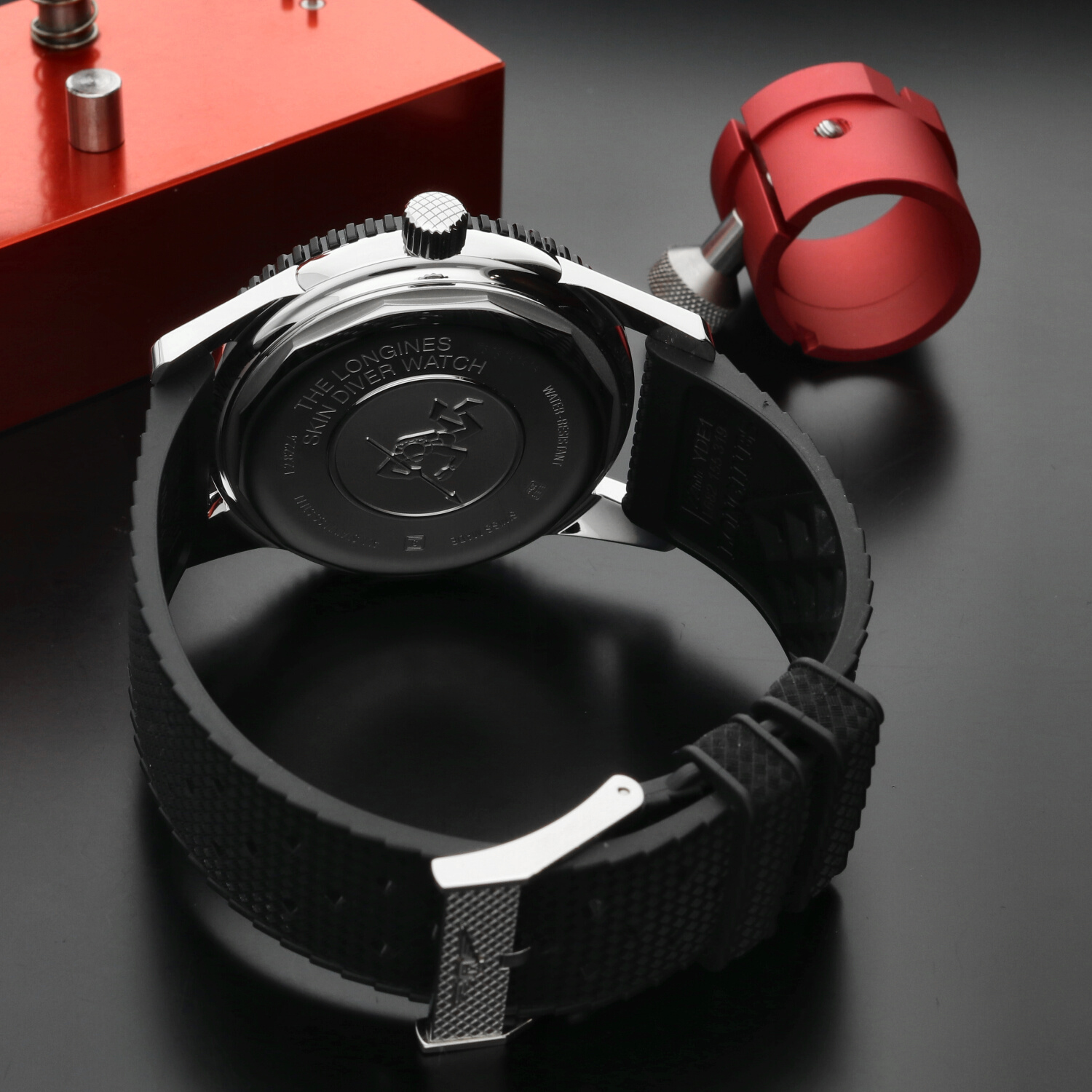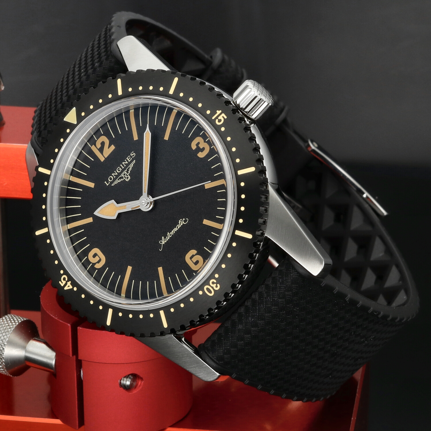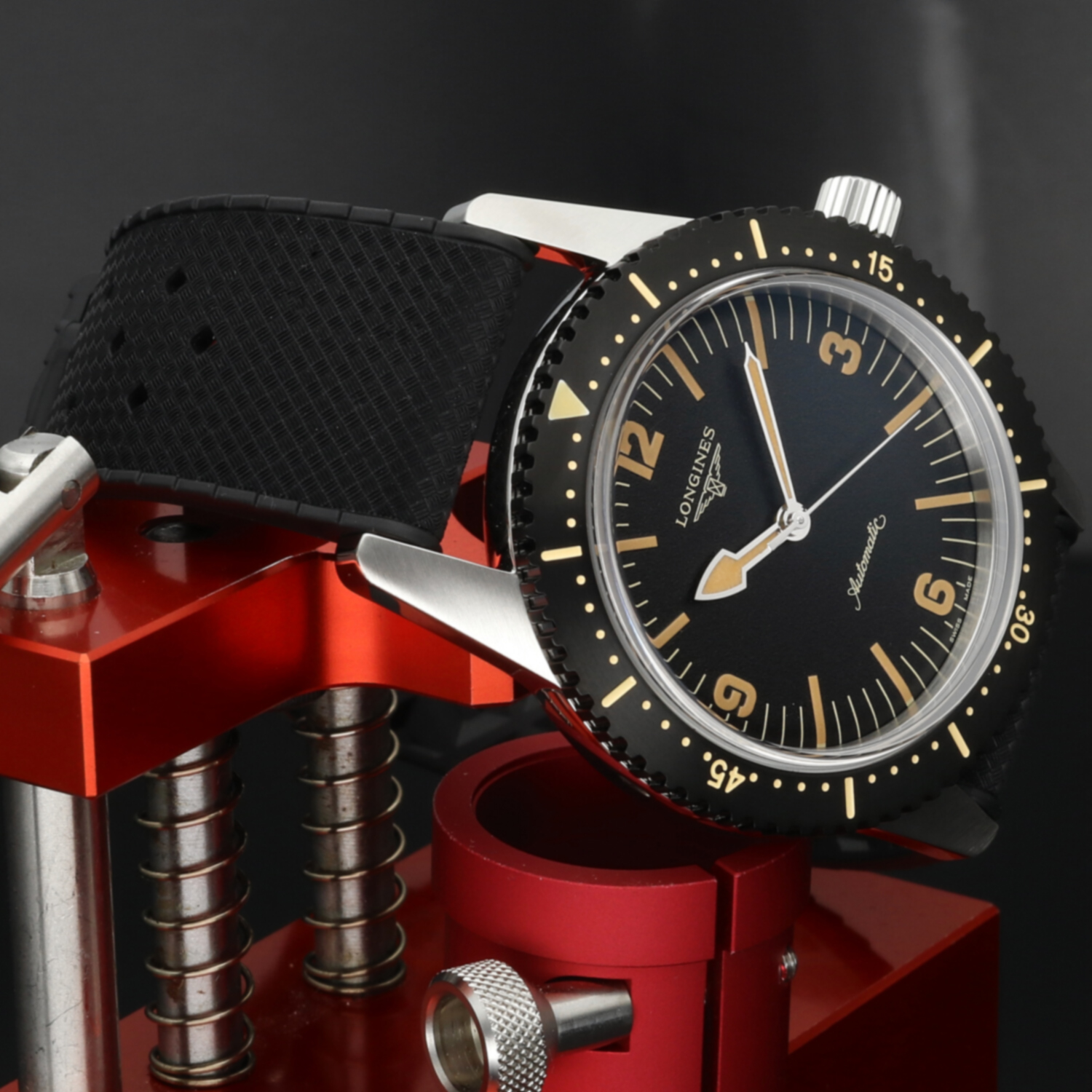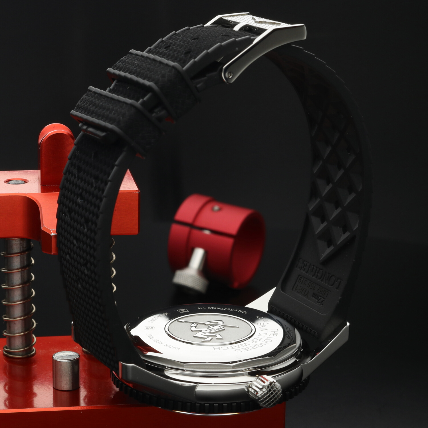 Cinturino: Il cinturino originale Longines in gomma nera è in condizioni pari al nuovo. Morbido, elastico e confortevole al polso, valorizza l’anima sportiva del modello. La fibbia ad ardiglione in acciaio si presenta nelle medesime condizioni, priva di segni evidenti di utilizzo.