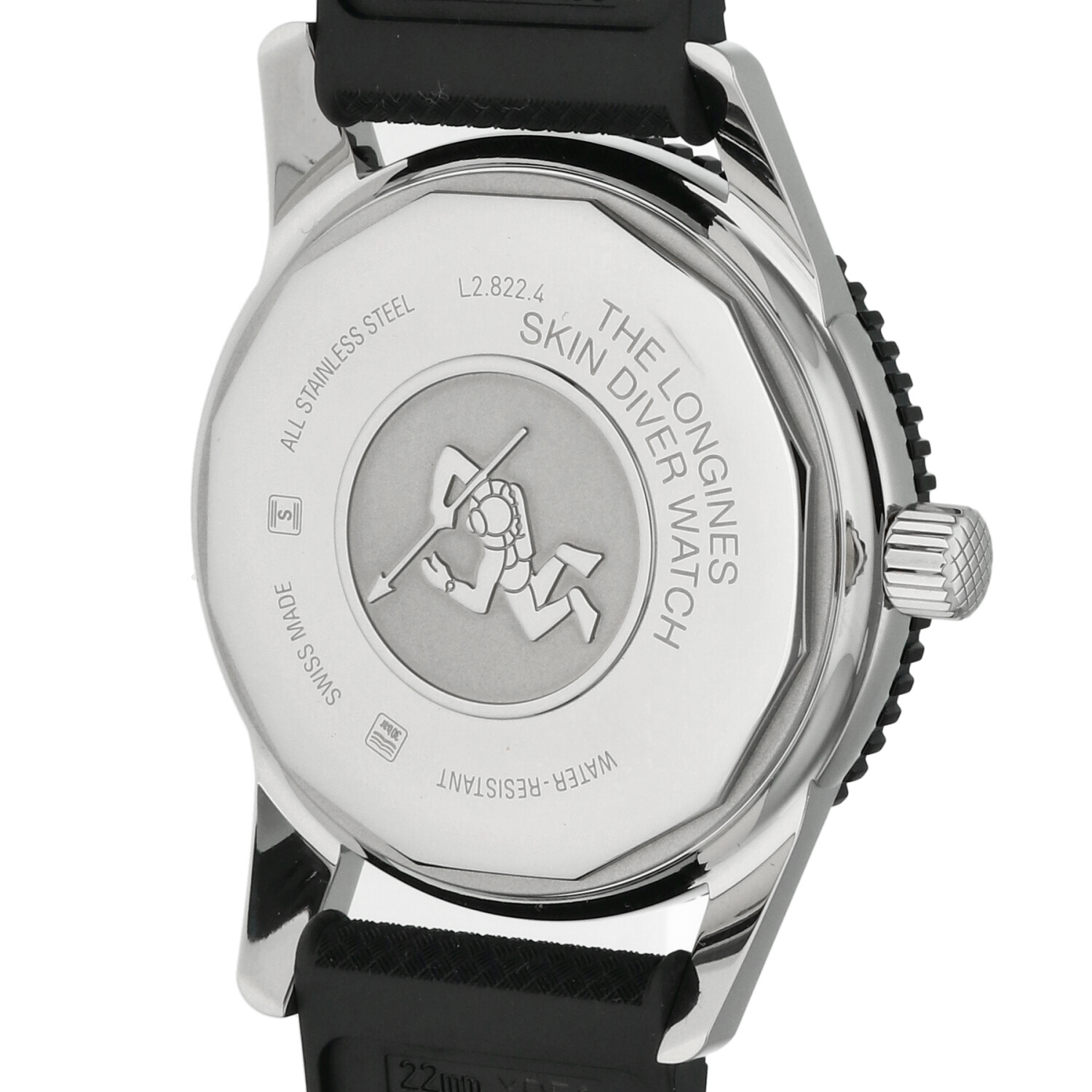 Panoramica Generale: La cassa in acciaio del Longines Skin Diver ref. L2.822.4.56.9 si presenta in condizioni eccellenti, con un impatto estetico che restituisce immediatamente la sensazione di un esemplare praticamente mai indossato. Le superfici lucide e satinate dialogano con armonia, riflettendo la qualità costruttiva della Maison. Solo osservando con attenzione si possono notare sottilissime linee superficiali, impercettibili nell’uso quotidiano. L’impressione complessiva è quella di un orologio estremamente curato, completo di tutta la sua dotazione originale.