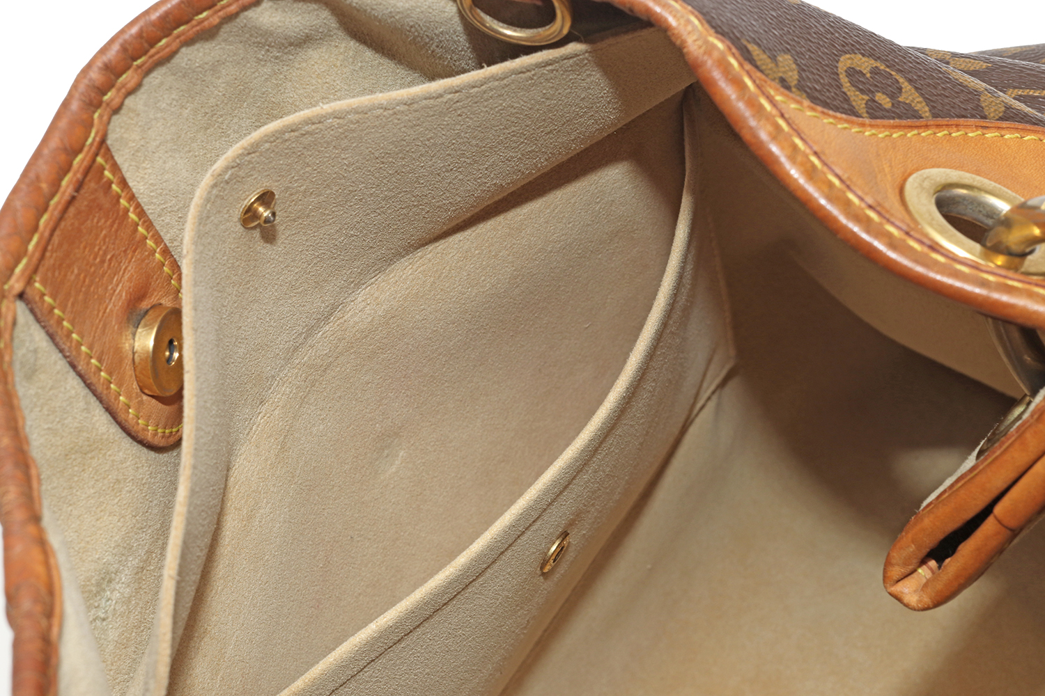 La tela Monogram appare compatta, uniforme e brillante, con motivi LV ben definiti e una struttura che mantiene la sua forma originale senza cedimenti. Un chiaro segno della qualità del canvas e dell’attenzione con cui la borsa è stata utilizzata nel tempo.