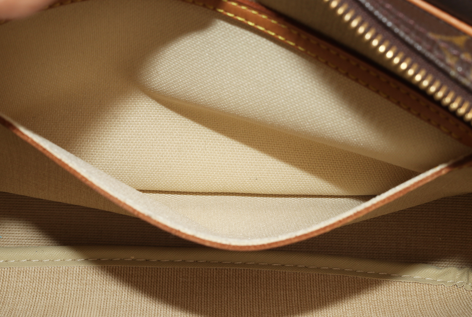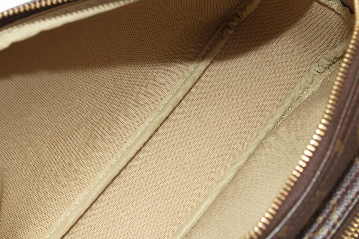 La tela Monogram in canvas rivestito è in condizioni eccellenti: compatta, uniforme e priva di crepe o abrasioni, con i motivi LV ancora perfettamente nitidi. Le finiture in vacchetta naturale mostrano una patina mielata omogenea, impreziosita da lievi aloni e piccole macchioline dovute al naturale processo di ossidazione, testimonianza del tempo e della genuinità del materiale. Sono caratteristiche proprie delle borse Louis Vuitton pre-loved più autentiche, segni distintivi che aggiungono valore e personalità al pezzo.