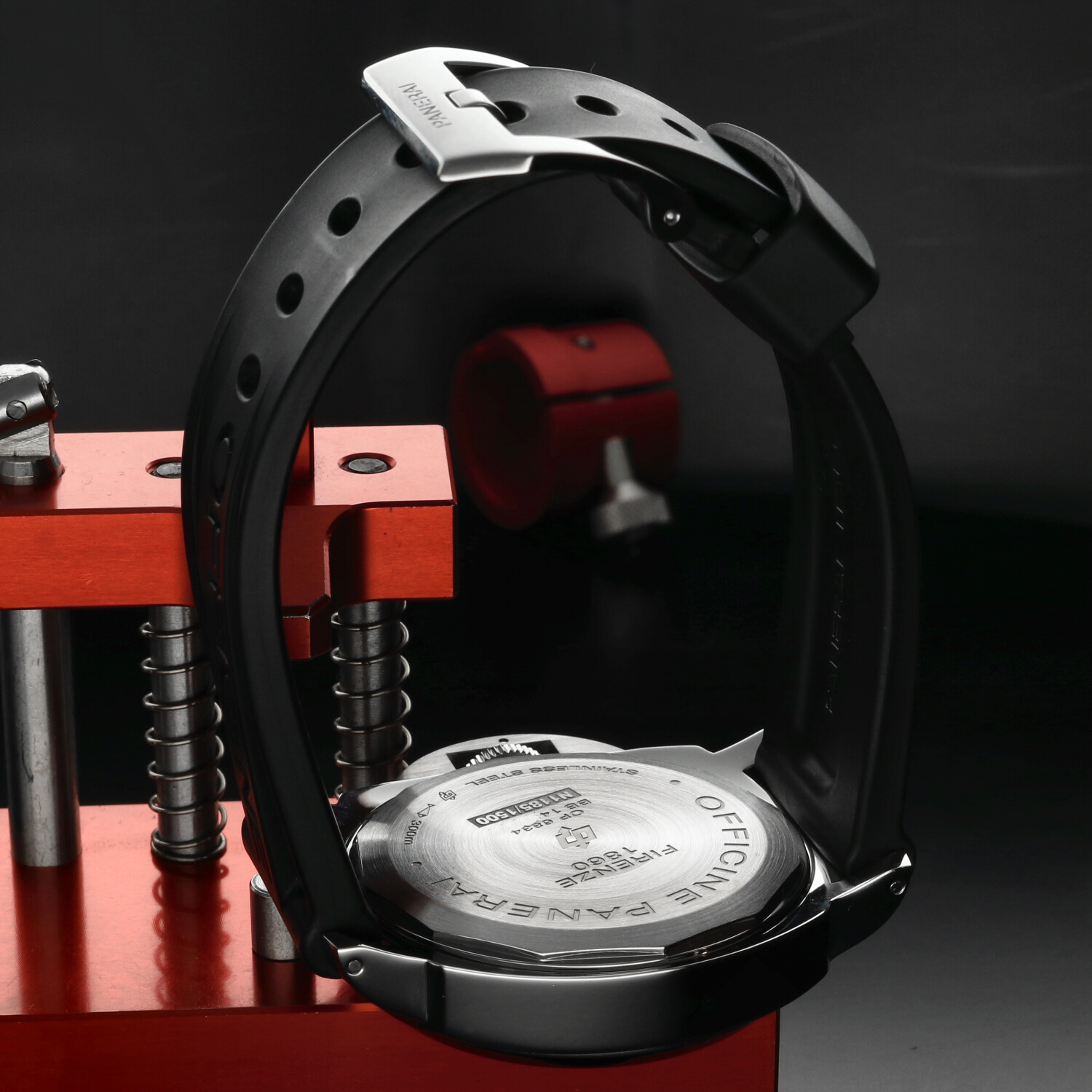Cinturino: L’orologio è corredato dal cinturino originale Panerai in caucciù, ben conservato e privo di segni di usura rilevanti. È inoltre presente un cinturino supplementare Panerai in pelle pari al nuovo. La chiusura è affidata alla classica fibbia trapezoidale Panerai in acciaio, anch’essa in eccellenti condizioni.