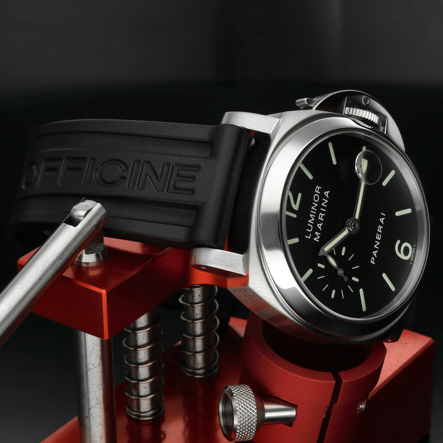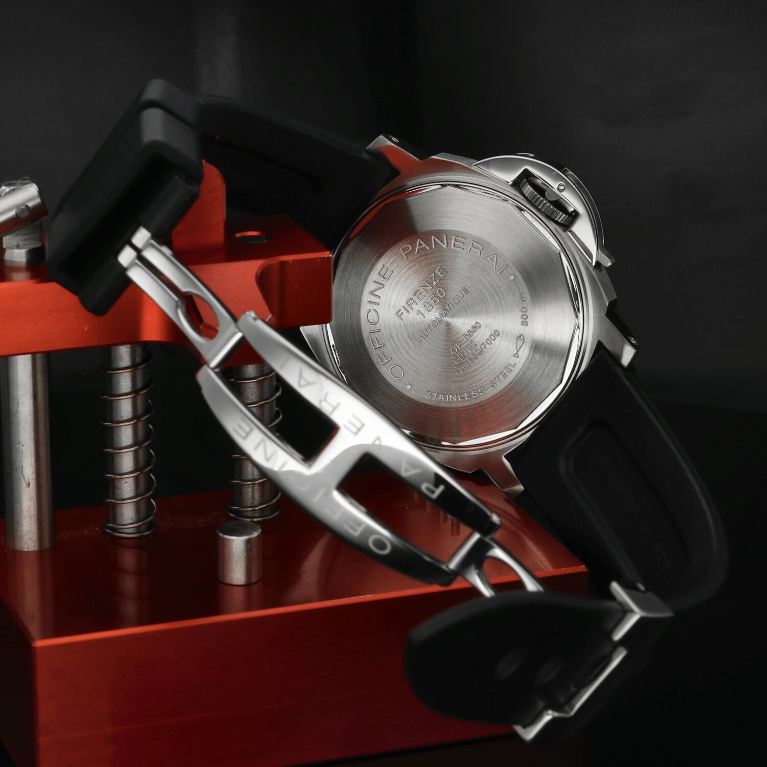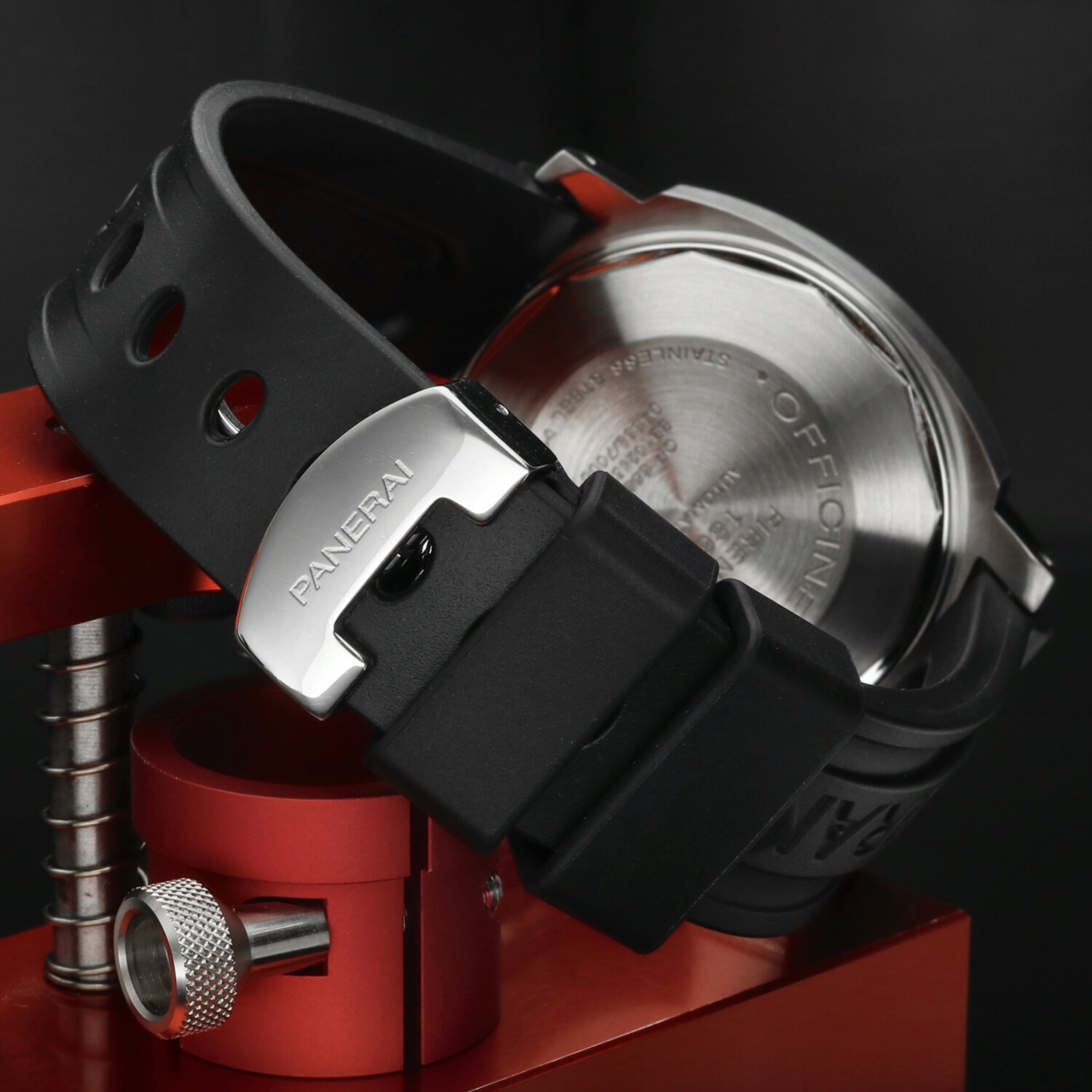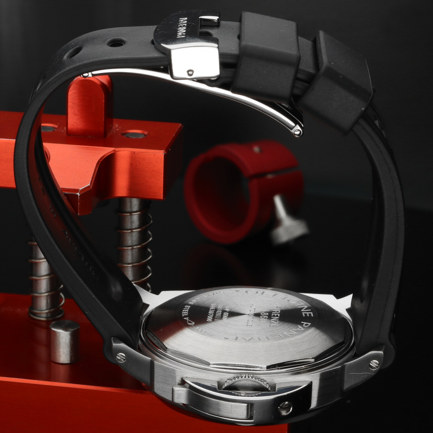 Cinturino: Il cinturino originale Panerai in caucciù è ottimamente conservato e non presenta segni di usura degni di nota. La chiusura deployante in acciaio si trova in ottime condizioni, con lievi hairlines superficiali non percepibili al tatto e difficilmente visibili a occhio nudo.