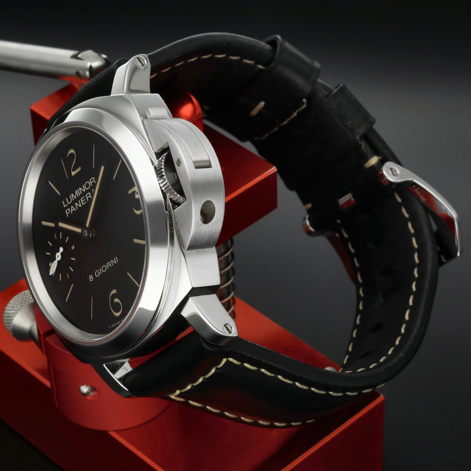 Il Panerai Luminor Base 8 Giorni ref. PAM00915 rappresenta l’essenza più pura dell’identità Panerai contemporanea: proporzioni importanti, estetica militare senza compromessi e una meccanica solida, pensata per durare nel tempo.