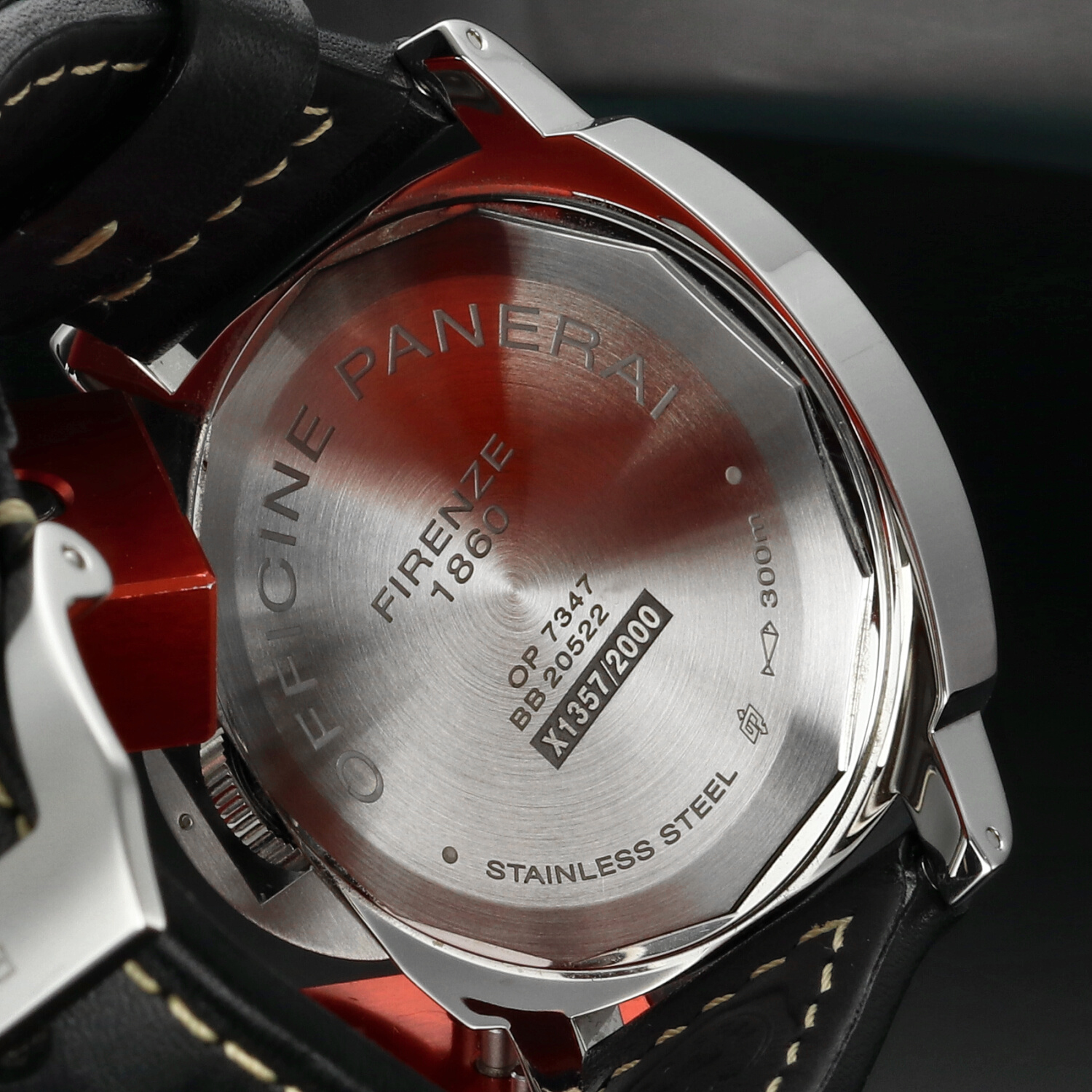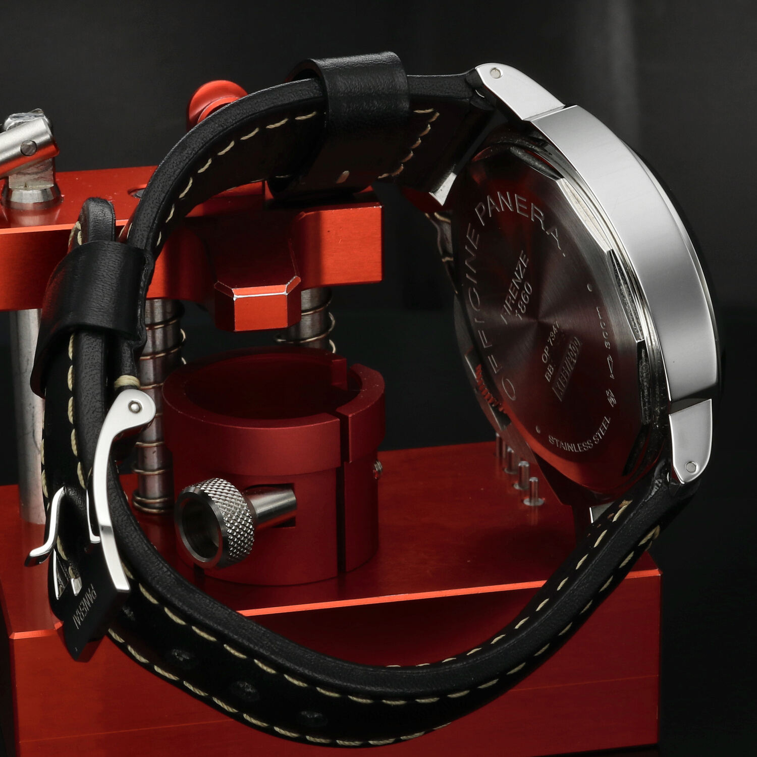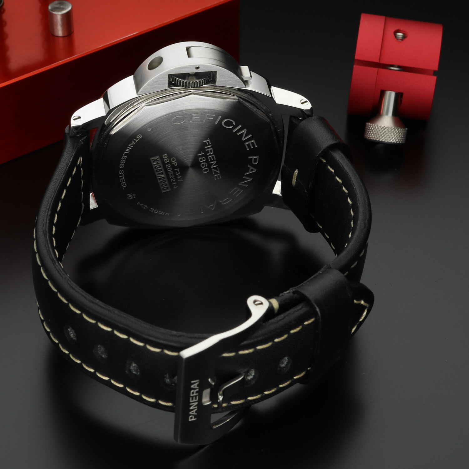 Al suo interno batte il calibro di manifattura P.5000 a carica manuale, dotato di ben otto giorni di riserva di carica. Un movimento robusto, progettato per offrire affidabilità e autonomia prolungata, fedele allo spirito funzionale che ha sempre caratterizzato Panerai.