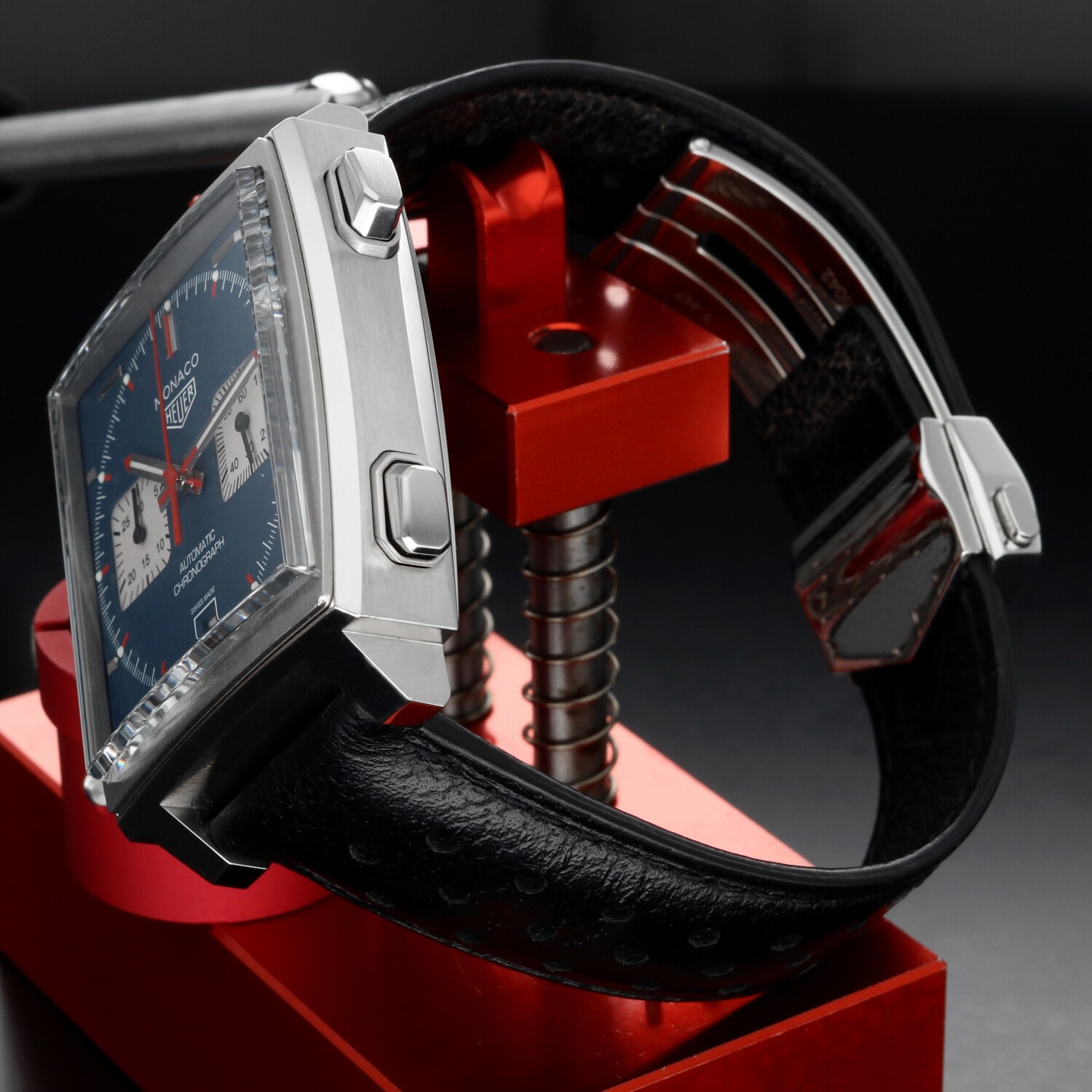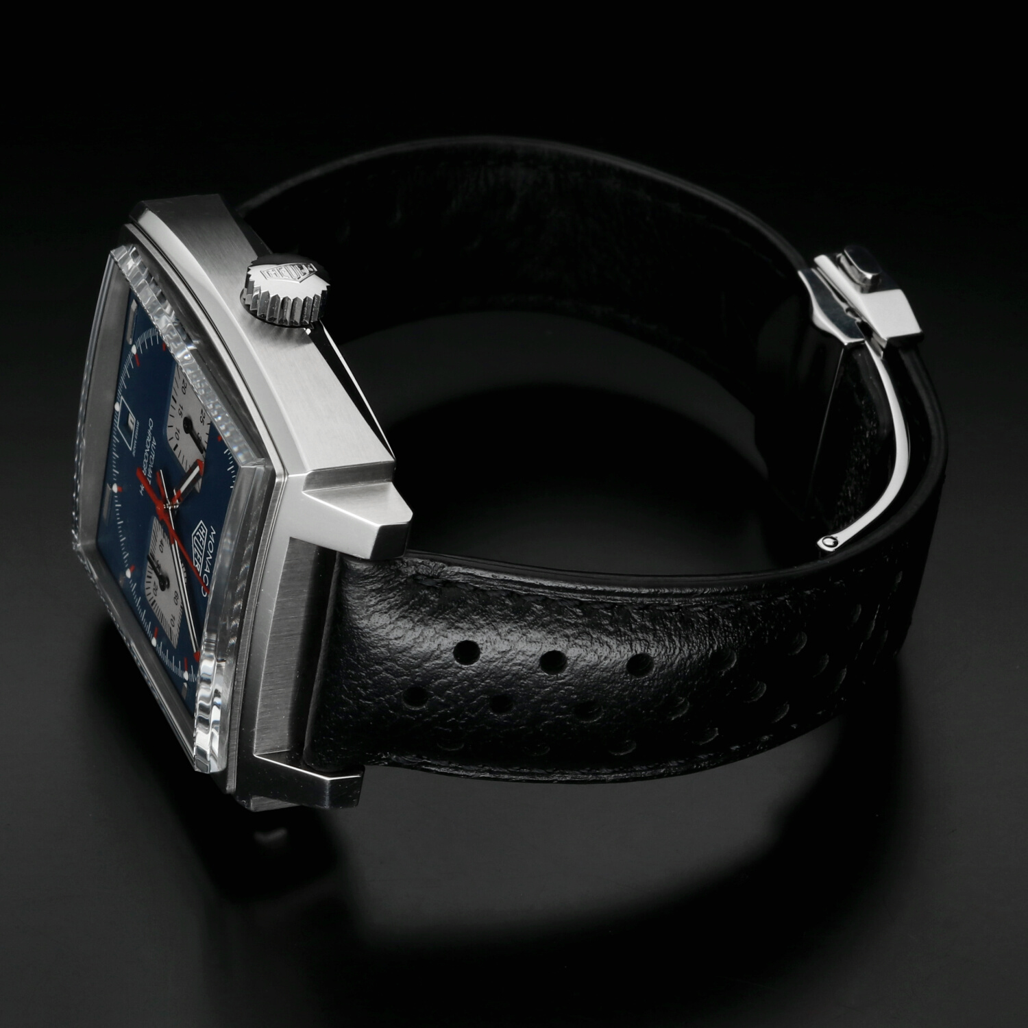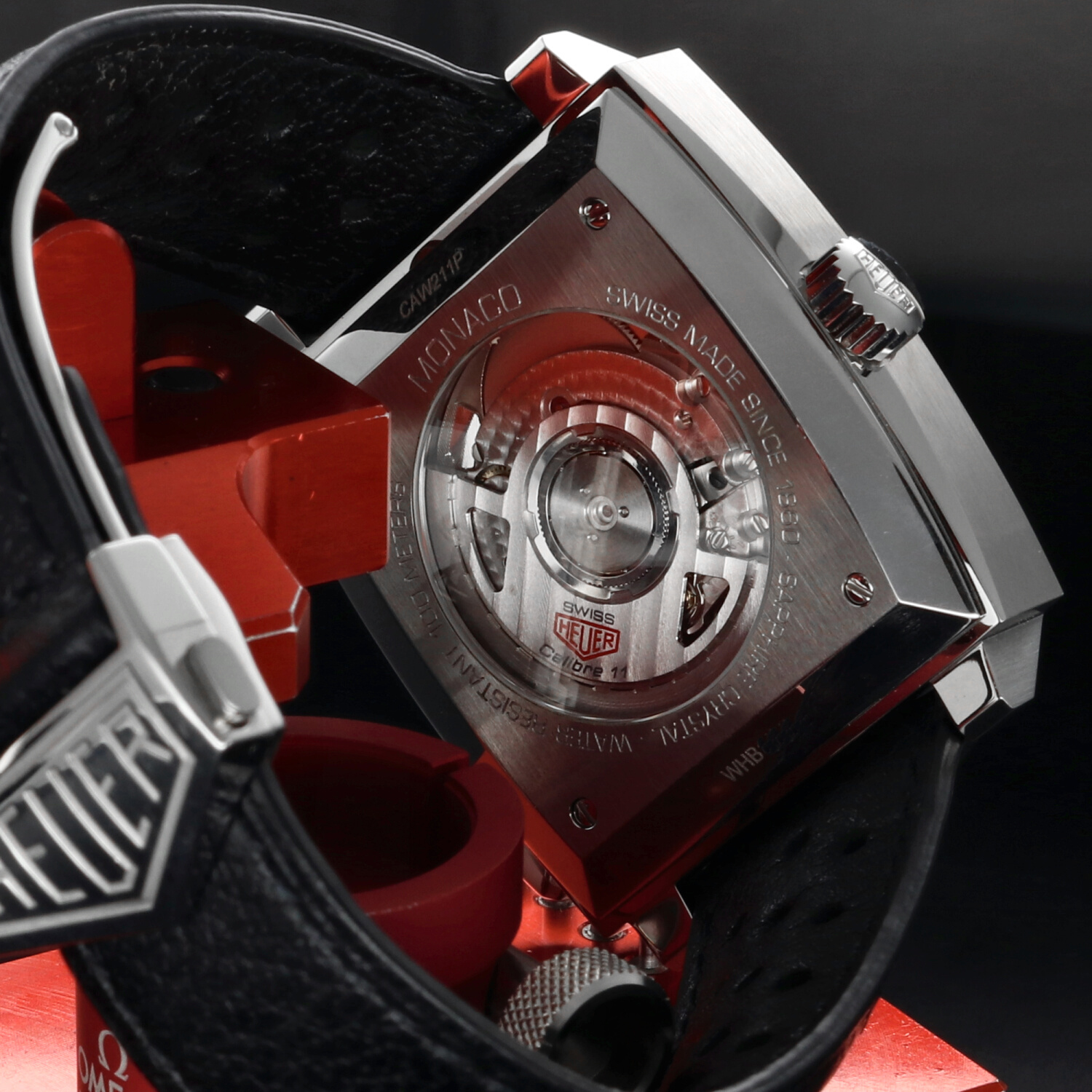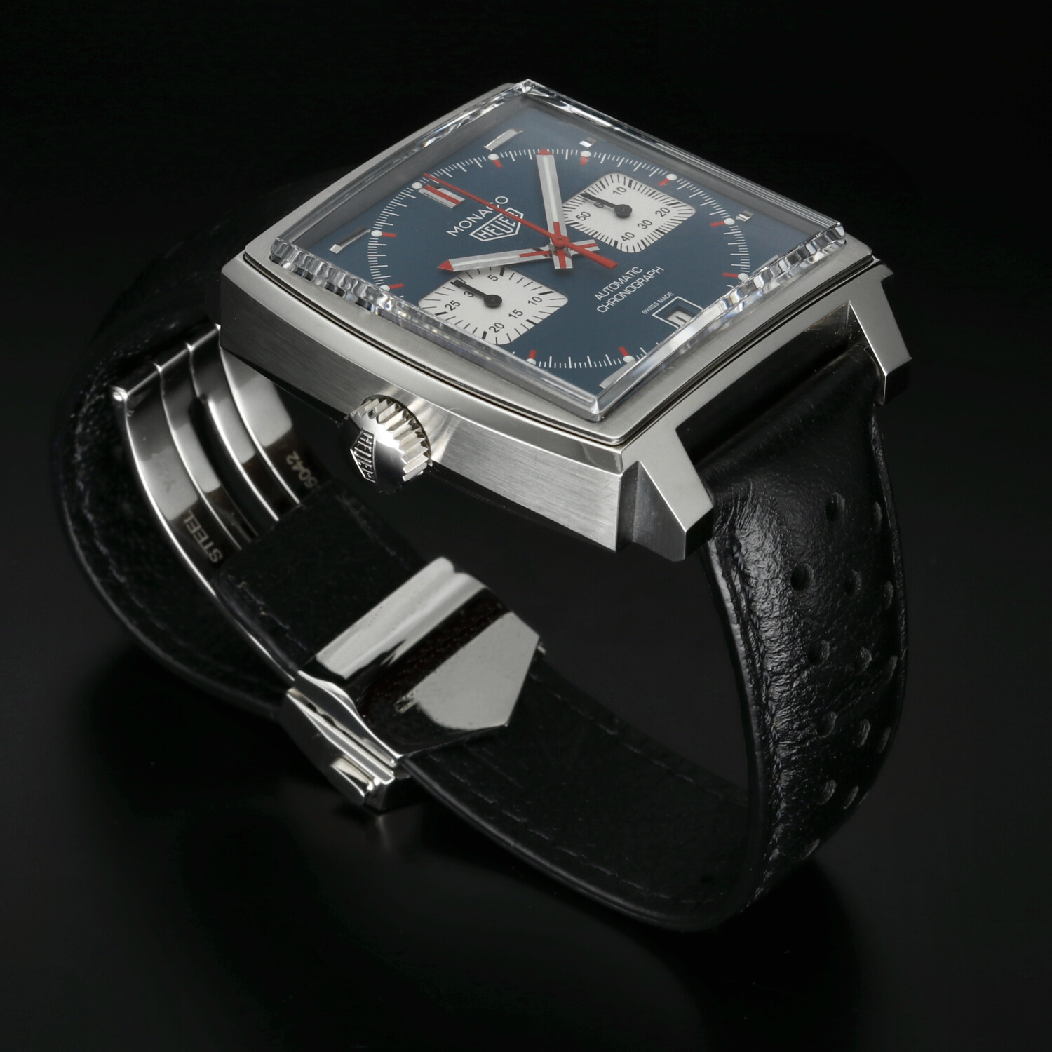 All’interno batte il movimento automatico Calibre 11, diretto discendente di quel movimento che alla fine degli anni ’60 partecipò alla nascita del primo cronografo automatico della storia. La caratteristica corona posizionata a sinistra, dettaglio tanto insolito quanto iconico, rende omaggio alla configurazione originale del Monaco indossato da McQueen.
