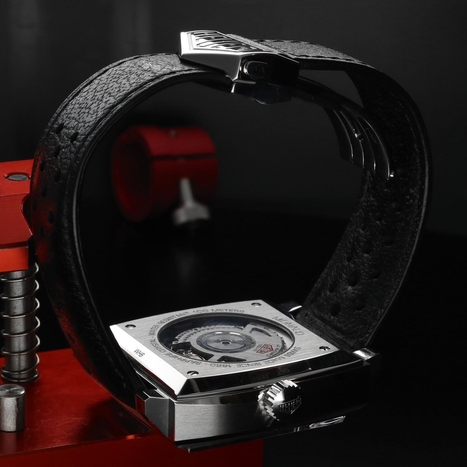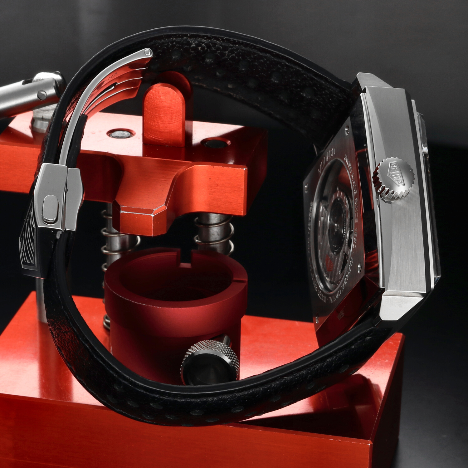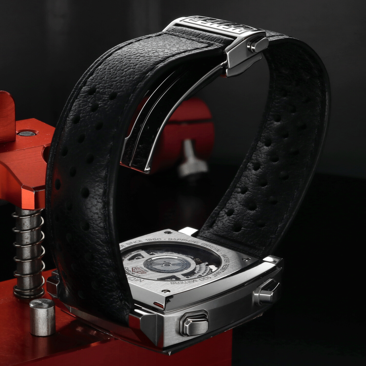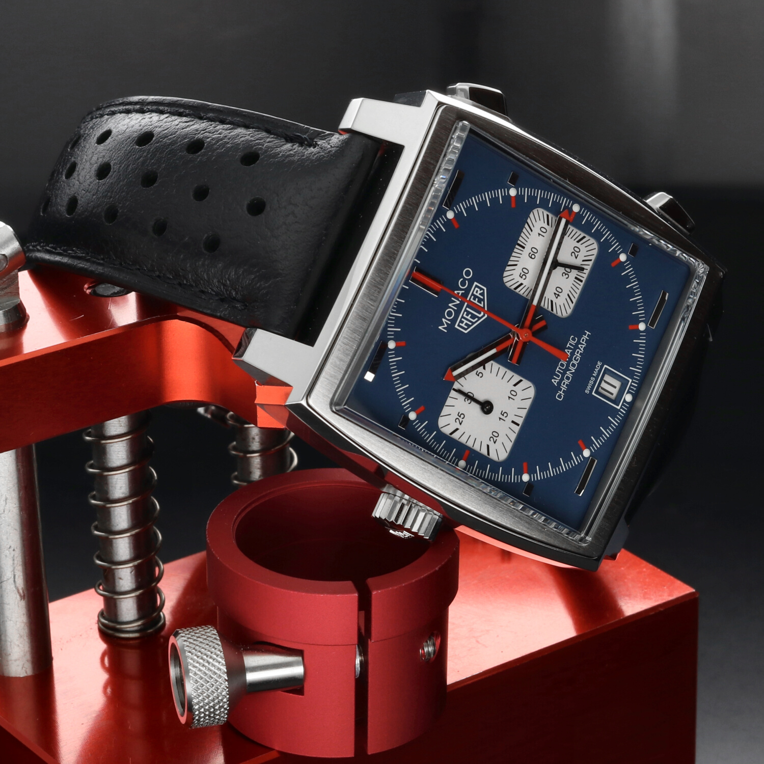 All’interno batte il movimento automatico Calibre 11, diretto discendente di quel movimento che alla fine degli anni ’60 partecipò alla nascita del primo cronografo automatico della storia. La caratteristica corona posizionata a sinistra, dettaglio tanto insolito quanto iconico, rende omaggio alla configurazione originale del Monaco indossato da McQueen.