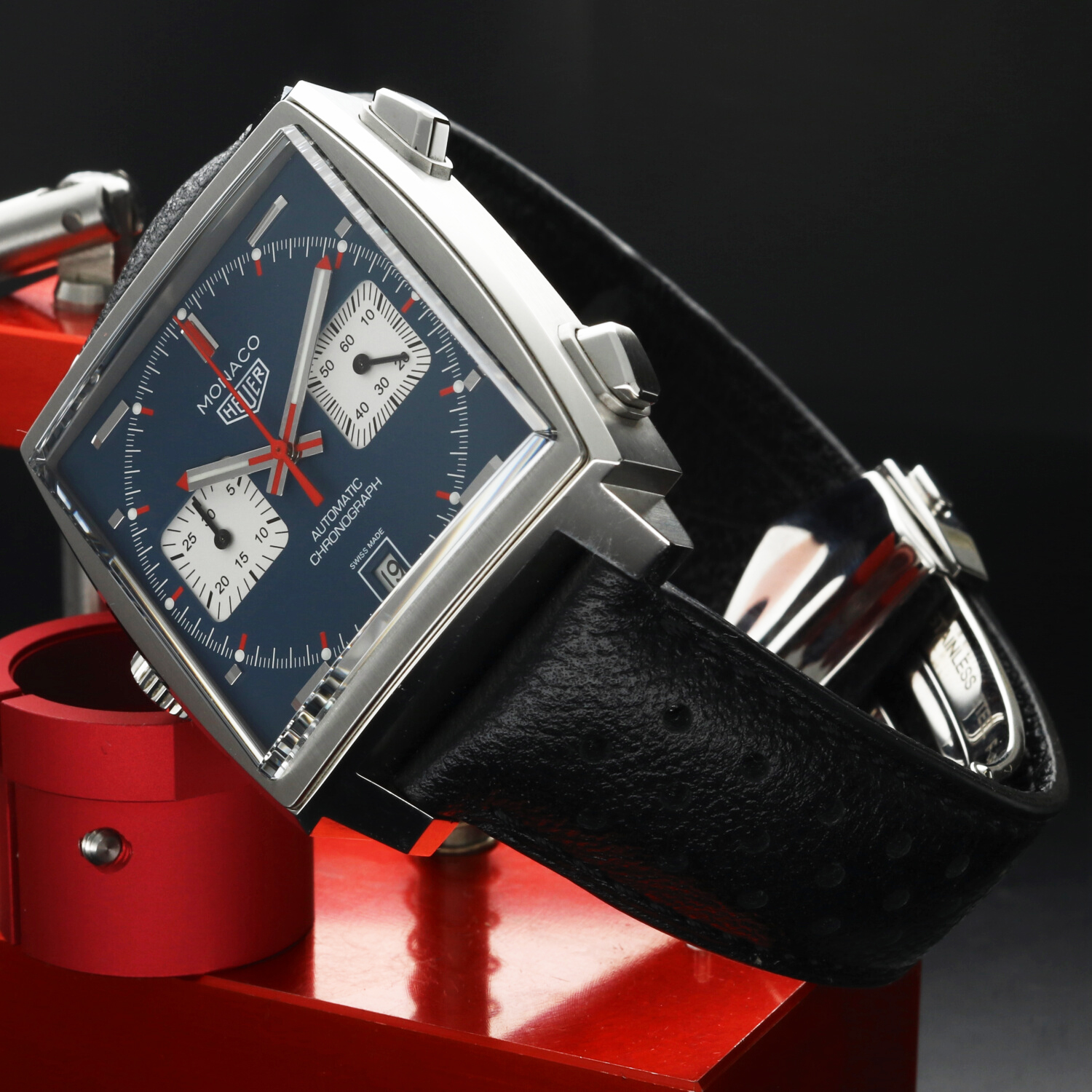 La sua leggenda inizia nel 1971, quando Steve McQueen lo indossò nel film Le Mans: da quel momento, il Monaco smise di essere solo un segnatempo per trasformarsi in un manifesto di personalità. La cassa quadrata da 39 mm, un design audace e rivoluzionario al tempo, rimane ancora oggi un tratto distintivo che lo rende immediatamente riconoscibile al polso.