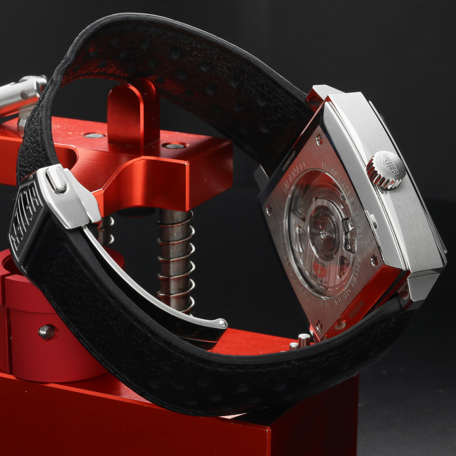Al suo interno batte il movimento automatico Calibre 11, erede di quell’innovazione che, oltre cinquant’anni fa, portò alla nascita del primo cronografo automatico della storia. La corona spostata a sinistra, dettaglio tanto inusuale quanto iconico, celebra le radici originali del modello indossato da McQueen.