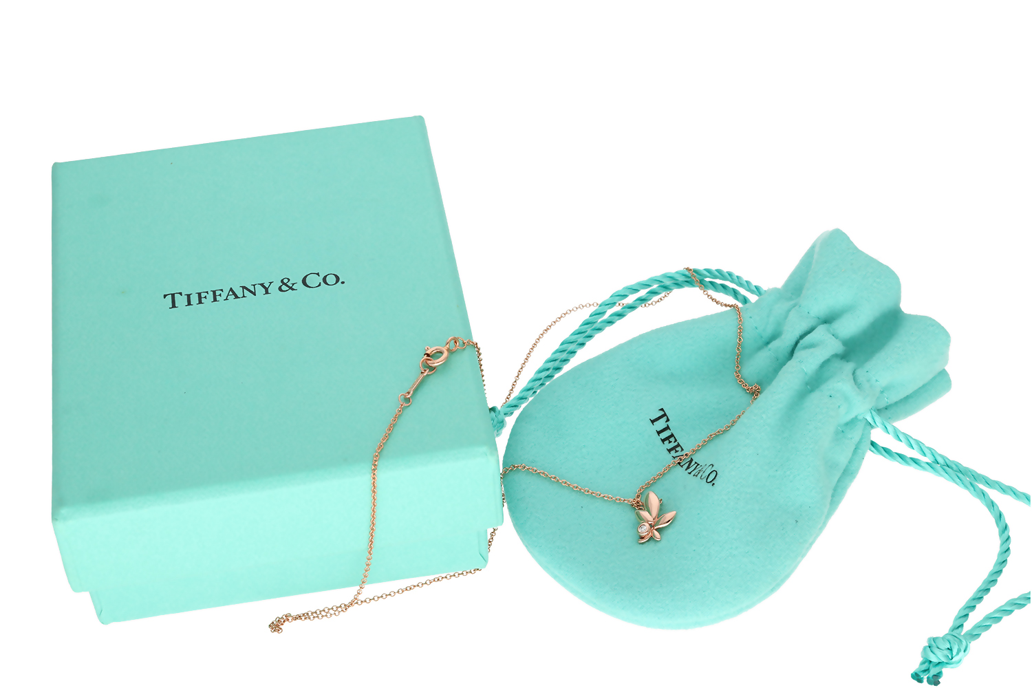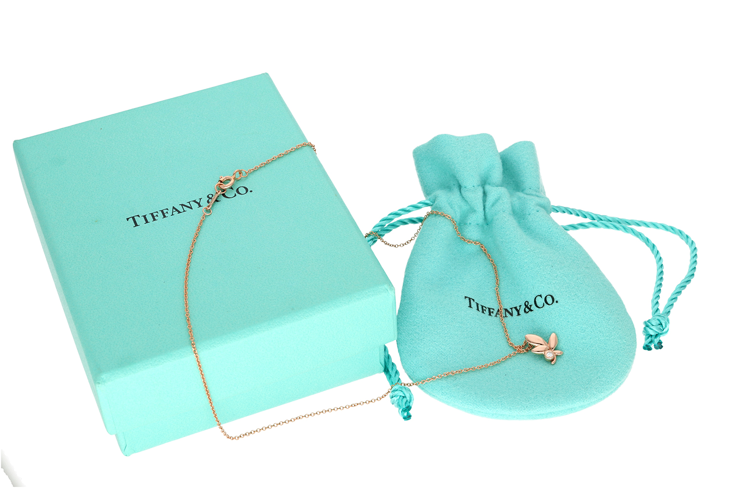 La collana viene fornita con la scatola originale Tiffany e il sacchetto antipolvere dedicato, elementi che completano l’eleganza del set e contribuiscono a preservarne nel tempo condizioni e valore.